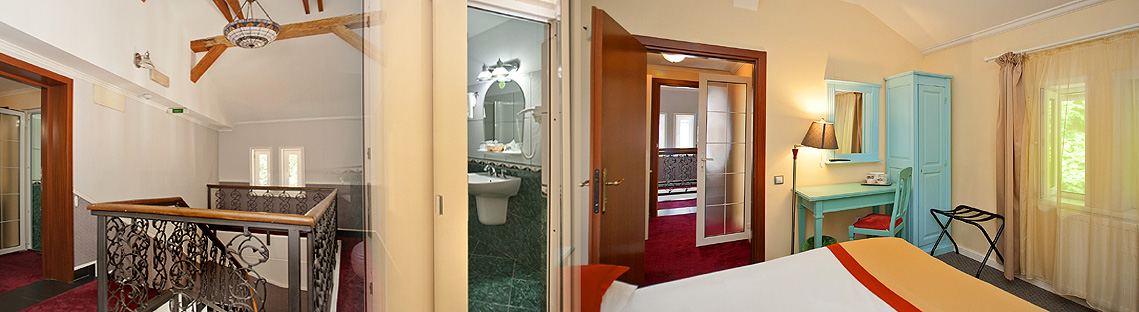 Stilul aristocrat si efectele moderne se imbina cu succes si mult bun gust in amenajarea camerelor.